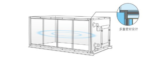 整機(jī)箱體的防冷橋系數(shù)滿足歐洲空氣處理機(jī)組標(biāo)準(zhǔn)EN1886的TB2級要求,防凝露效果出色,氣密性好。